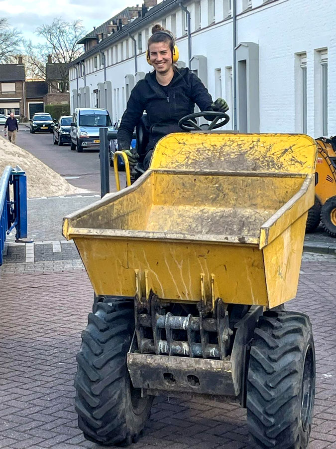 Omdat ik daar zo van genoot, stelde ik mezelf de vraag: kan ik hier niet mijn werk van maken? De combinatie van het creatieve proces bij een ontwerp en het werken buiten, met mijn handen, passen heel erg bij mij. Om mijn vraag te beantwoorden en te onderzoeken hoe werken in het groen eruit kan zien, ben ik volledig in deze wereld gedoken. Werkervaring in tuinaanleg heb ik opgedaan bij hoveniers, bij grote en kleine bedrijven. Ik werk als vrijwilliger op een tuinderij en ben de deeltijdopleiding Tuin- en Landschapsinrichting gaan volgen aan Van Hall Larenstein in Velp.